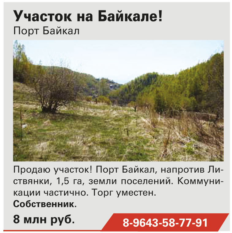 Продается участок 1,5 га на Байкале (порт Байкал)