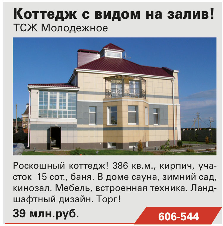 Коттедж с видом на залив! ТСЖ Молодежное. Цена 39 млн.р.