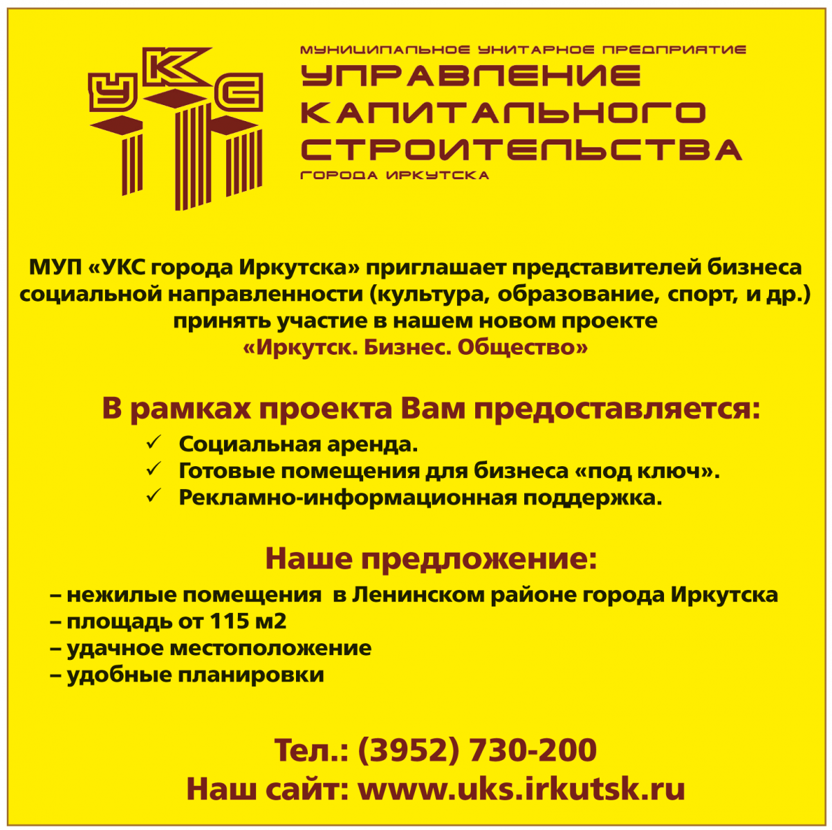 Управление капитального строительства г.Иркутска приглашает представителей бизнеса социальной направленности принять участие в проекте "Иркутск.Бизнес.Общество"