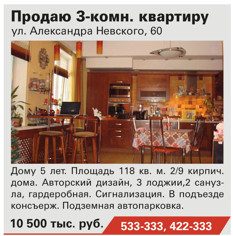 Продаю 3-комн. квартиру по ул. А.Невского. Стоимость 10,5 млн.р. (фото)