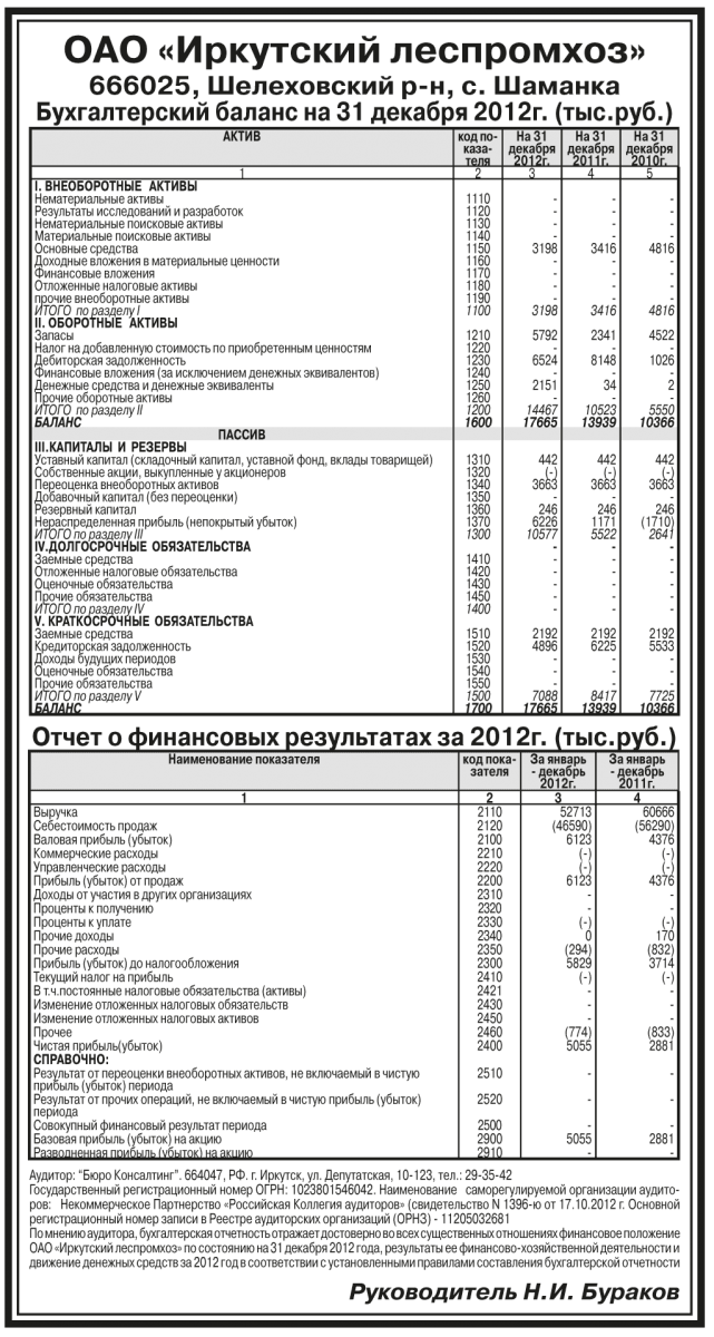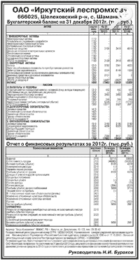 Годовая бухгалтерская отчетность ОАО «Иркутский леспромхоз» за 2012 год
