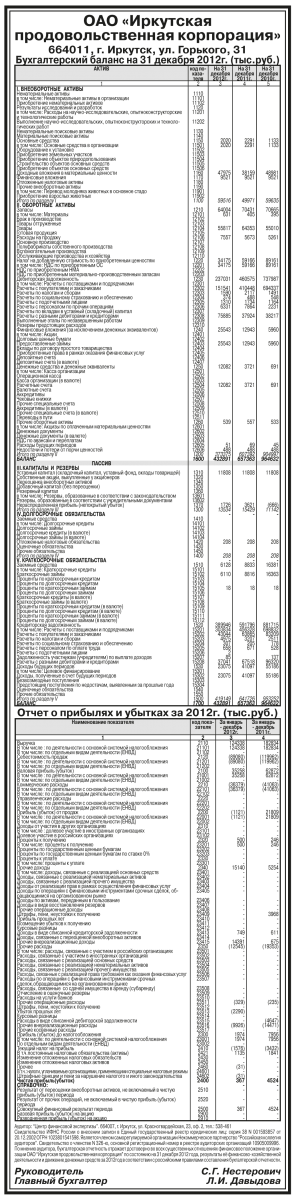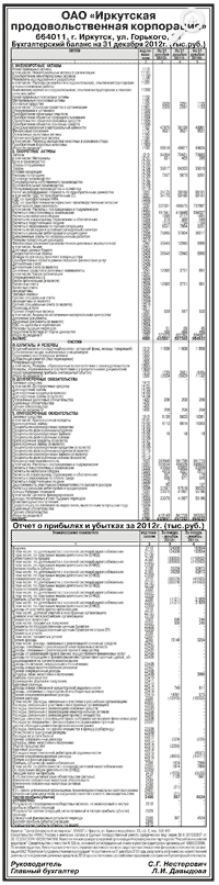 Годовая бухгалтерская отчетность ОАО «Иркутская продовольственная корпорация» за 2012 год