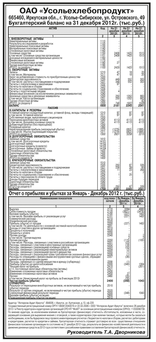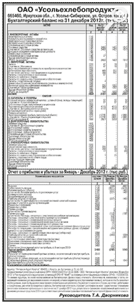 Годовая бухгалтерская отчетность ОАО «Усольехлебопродукт» за 2012 год