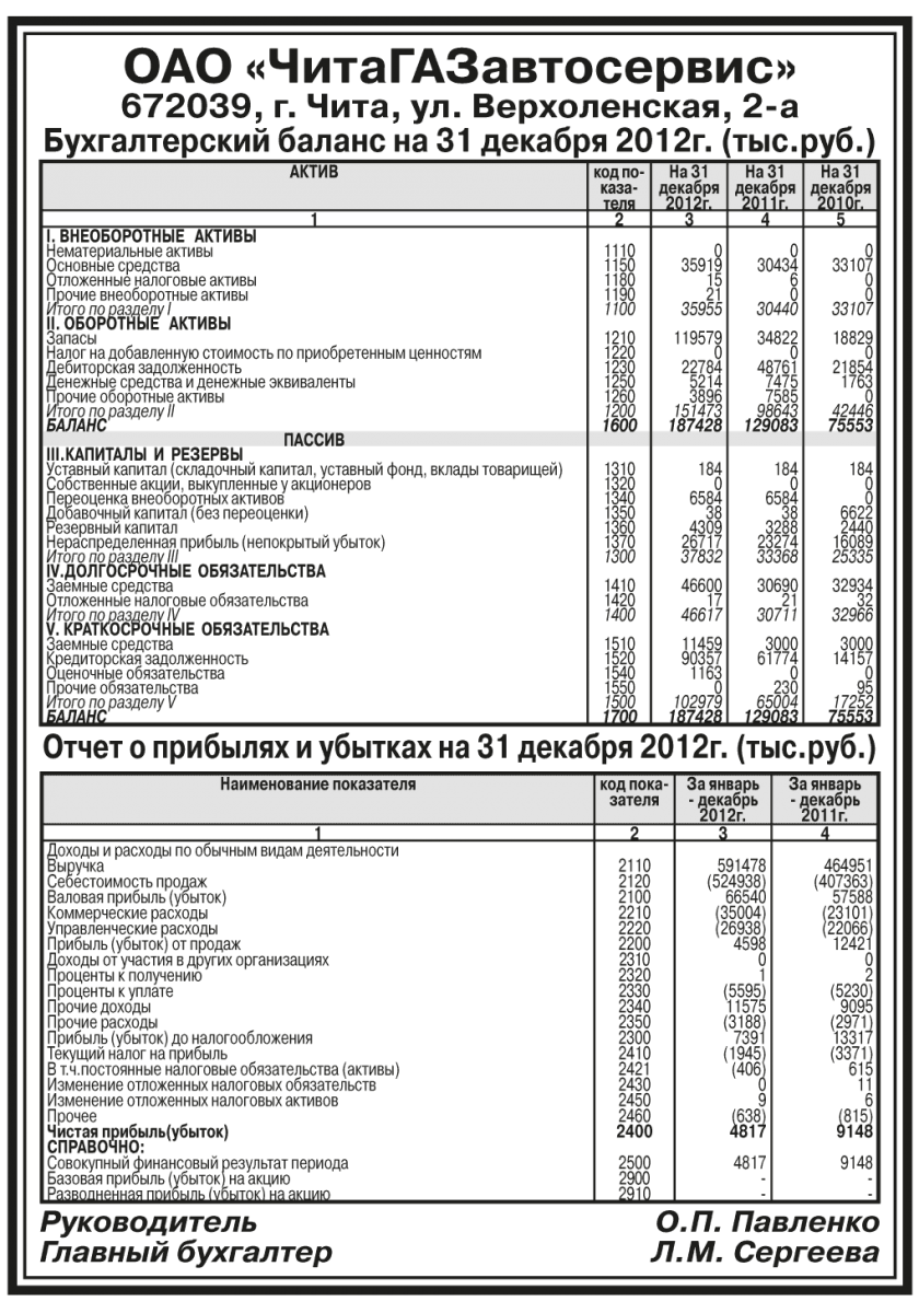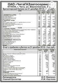 Годовая бухгалтерская отчетность ОАО «ЧитаГАЗавтосервис» за 2012 год