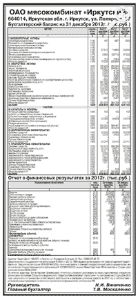 Годовая бухгалтерская отчетность ОАО мясокомбинат «Иркутский» за 2012 год