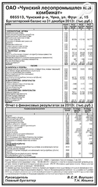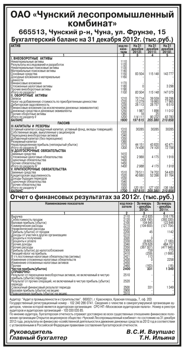 Годовая бухгалтерская отчетность ОАО «Чунский лесопромышленный комбинат» за 2012 год