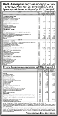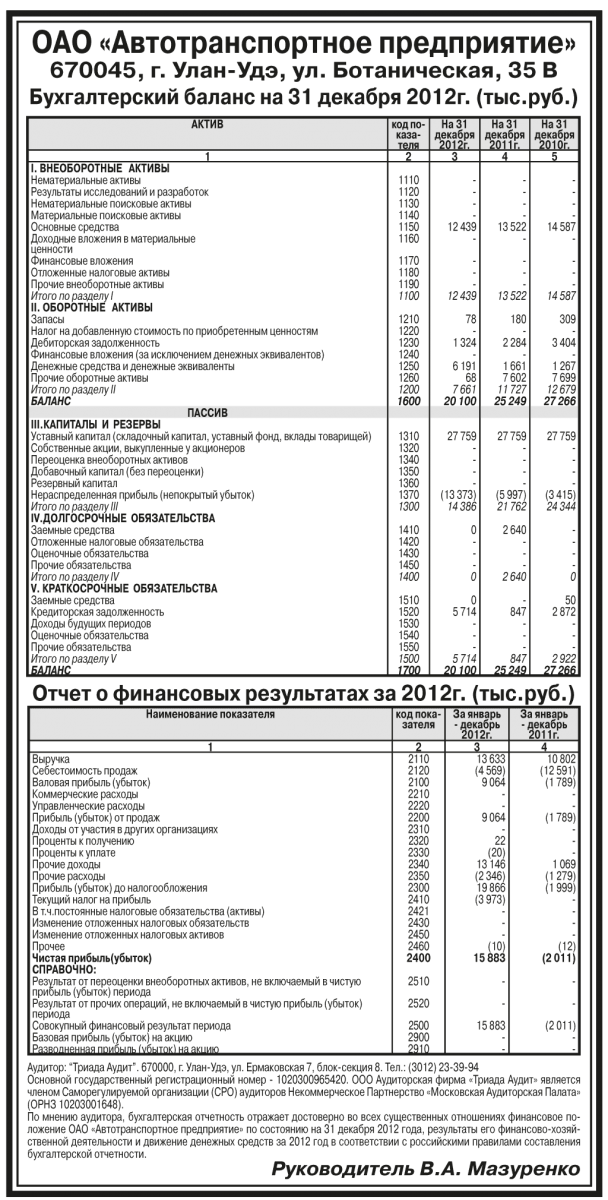 Годовая бухгалтерская отчетность ОАО «Автотранспортное предприятие» за 2012 год