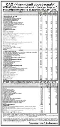 Годовая бухгалтерская отчетность ОАО «Читинский зооветснаб» за 2012 год