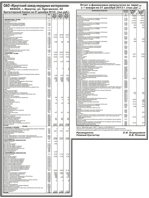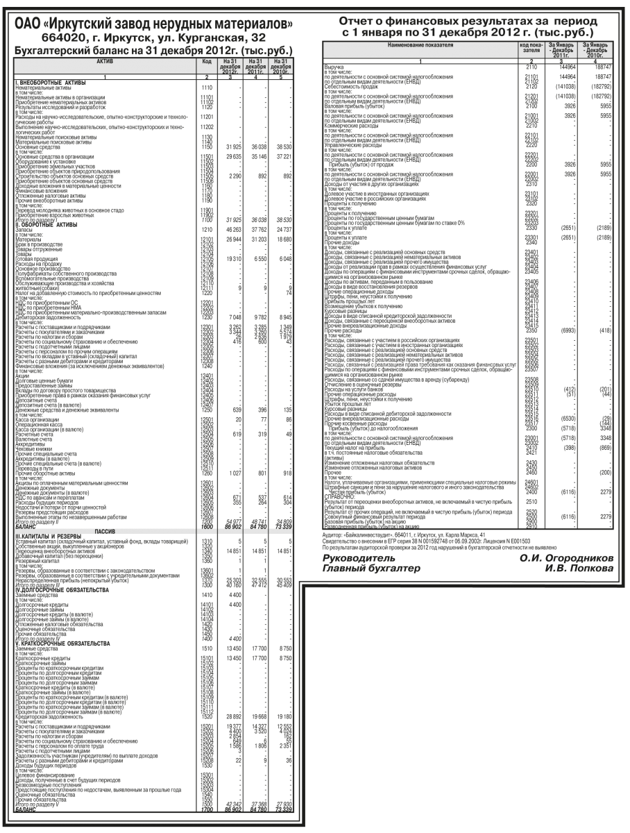 Годовая бухгалтерская отчетность ОАО «Иркутский завод нерудных материалов» за 2012 год
