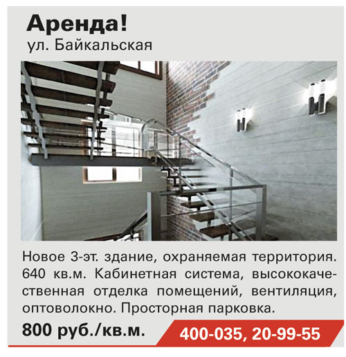 Аренда! ул. Байкальская. 640 кв.м. Новое здание, кабинетная система, отделка, парковка (фото)