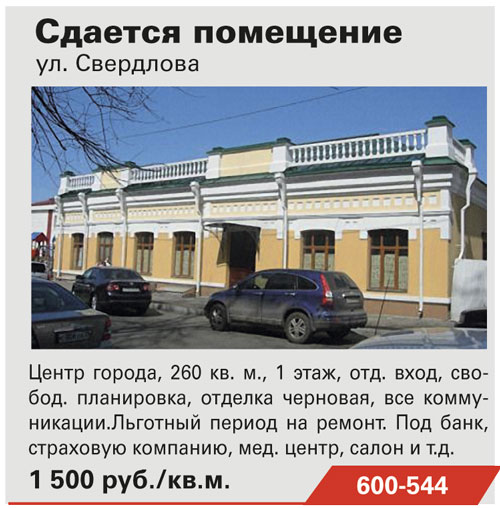Сдается помещение с отдельным входом под банк, страховую компанию, салон на ул. Свердлова (фото)