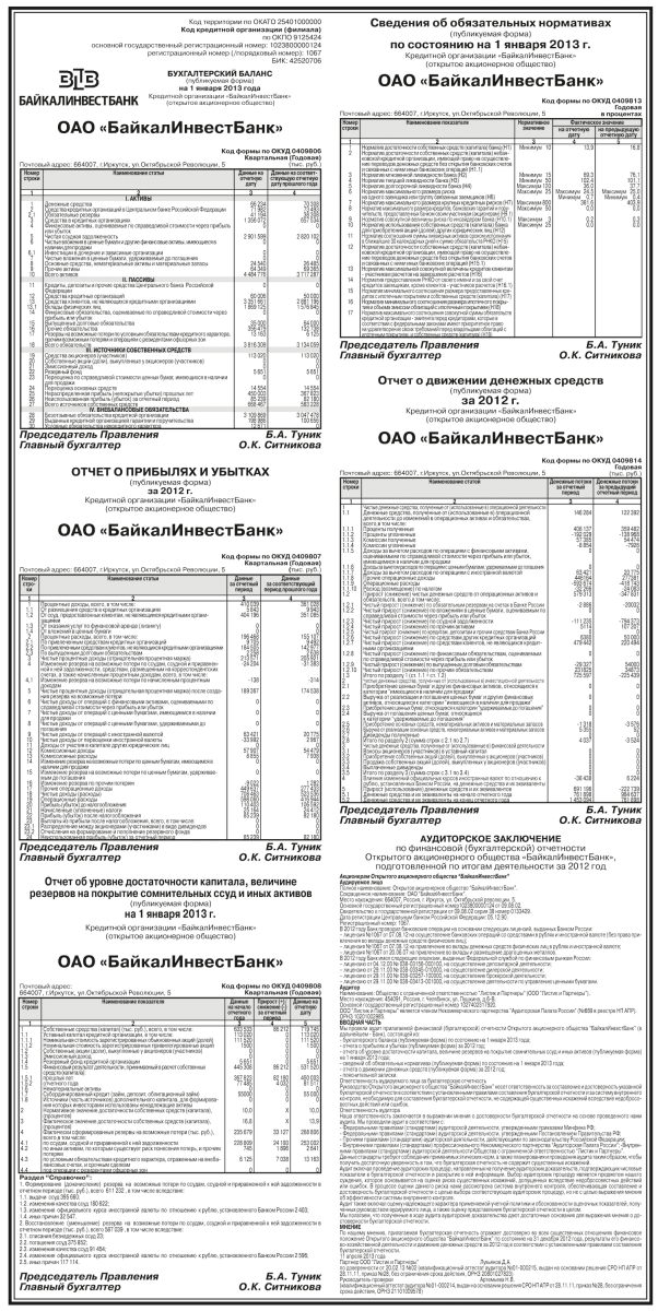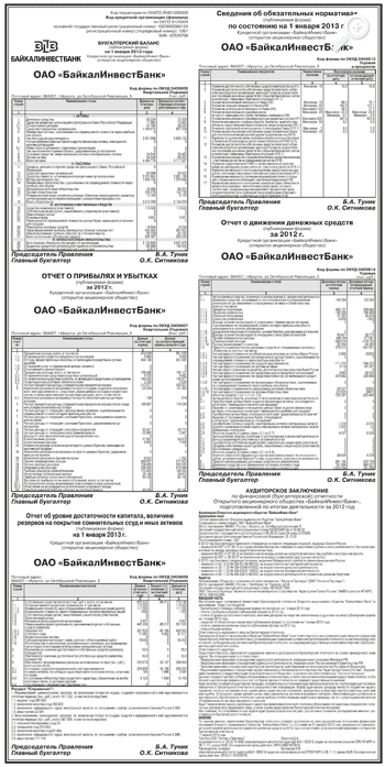 Бухгалтерская отчетность ОАО «БайкалИнвестБанк» за 2012 год