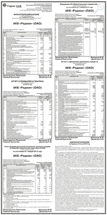 Бухгалтерская отчетность АКБ «Радиан» (ОАО) за 2012 год