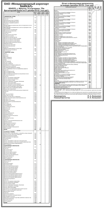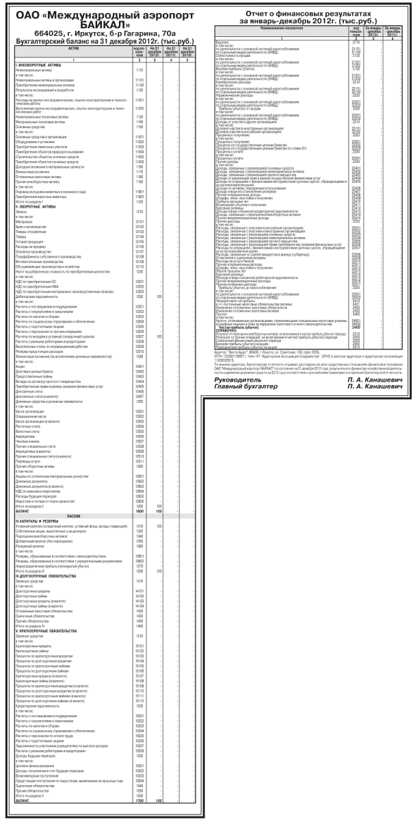 Годовая бухгалтерская отчетность ОАО «Международный аэропорт БАЙКАЛ» за 2012 год