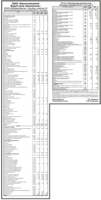 Годовая бухгалтерская отчетность ОАО «Авиакомпания Бурятские авиалинии» за 2012 год