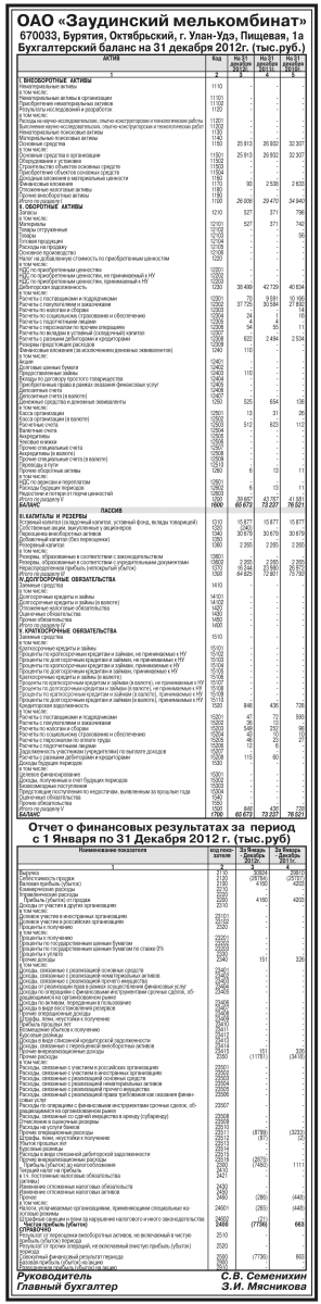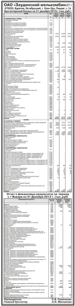 Годовая бухгалтерская отчетность ОАО «Заудинский мелькомбинат» за 2012 год