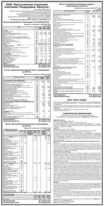 Годовая бухгалтерская отчетность ОАО «Крестьянская страховая компания «Поддержка. Иркутск» за 2012 год