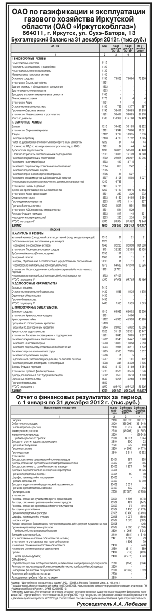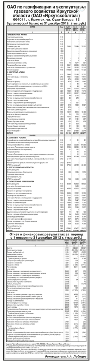 Годовая бухгалтерская отчетность ОАО по газификации и эксплуатации газового хозяйства Иркутской области (ОАО «Иркутскоблгаз») за 2012 год
