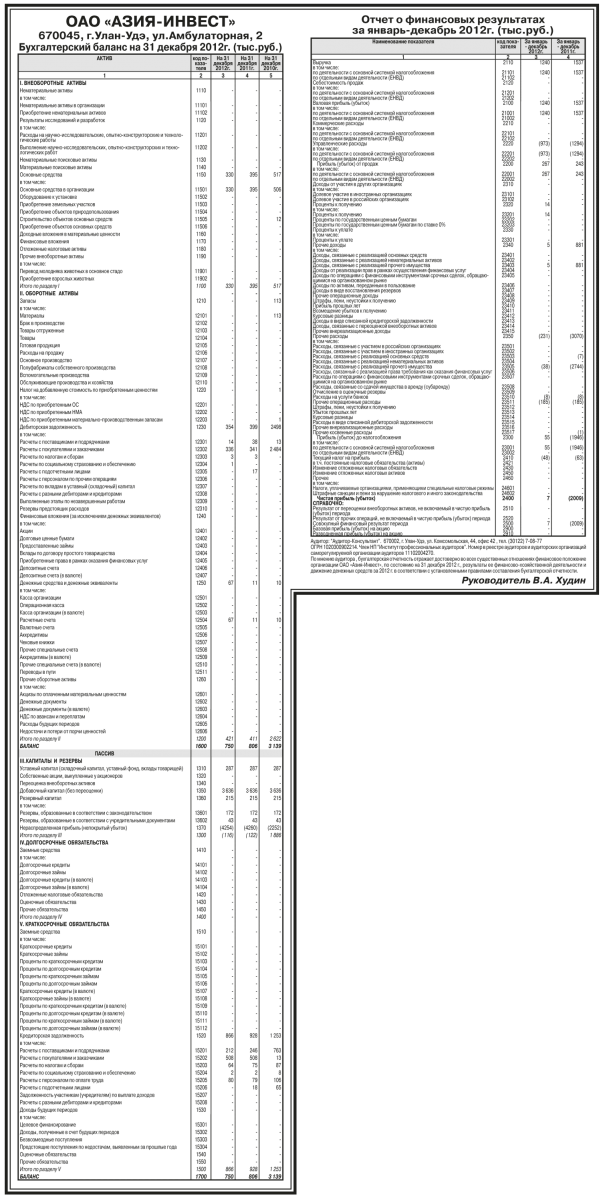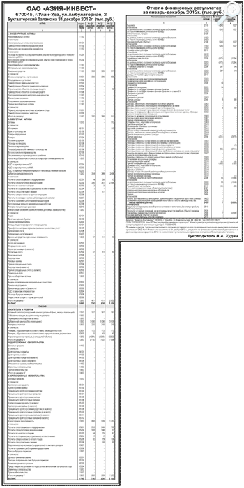Годовая бухгалтерская отчетность ОАО «АЗИЯ-ИНВЕСТ» за 2012 год
