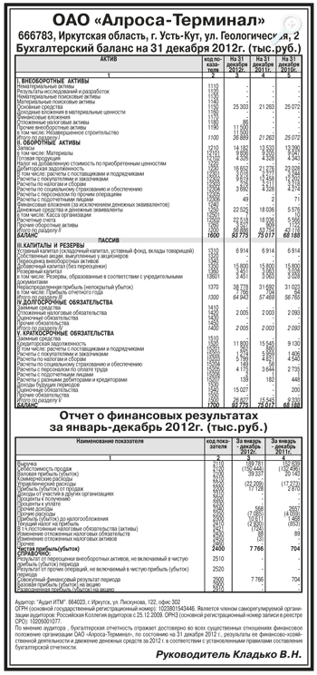Годовая бухгалтерская отчетность ОАО «Алроса-Терминал» за 2012 год