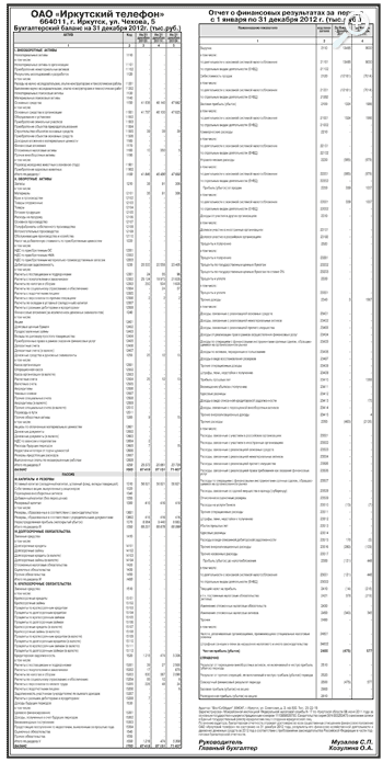 Годовая бухгалтерская отчетность ОАО «Иркутский телефон» за 2012 год