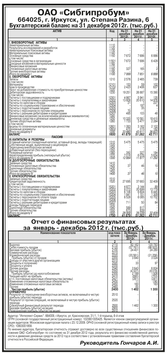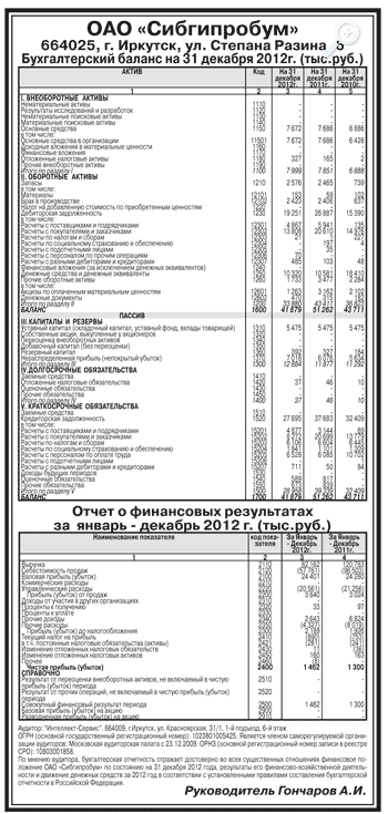 Годовая бухгалтерская отчетность ОАО «Сибгипробум» за 2012 год