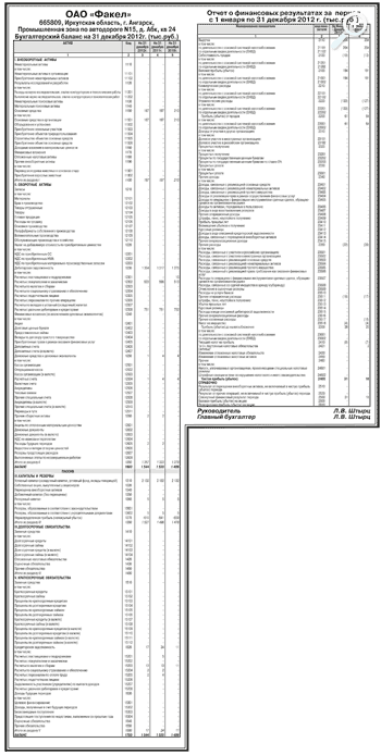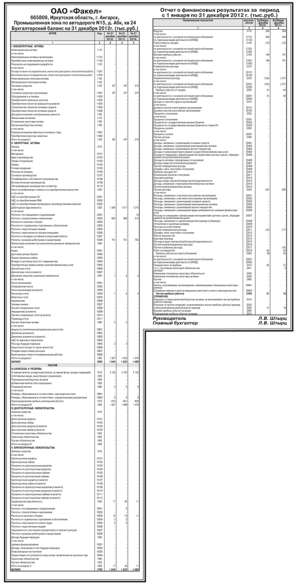 Годовая бухгалтерская отчетность ОАО «Факел» за 2012 год