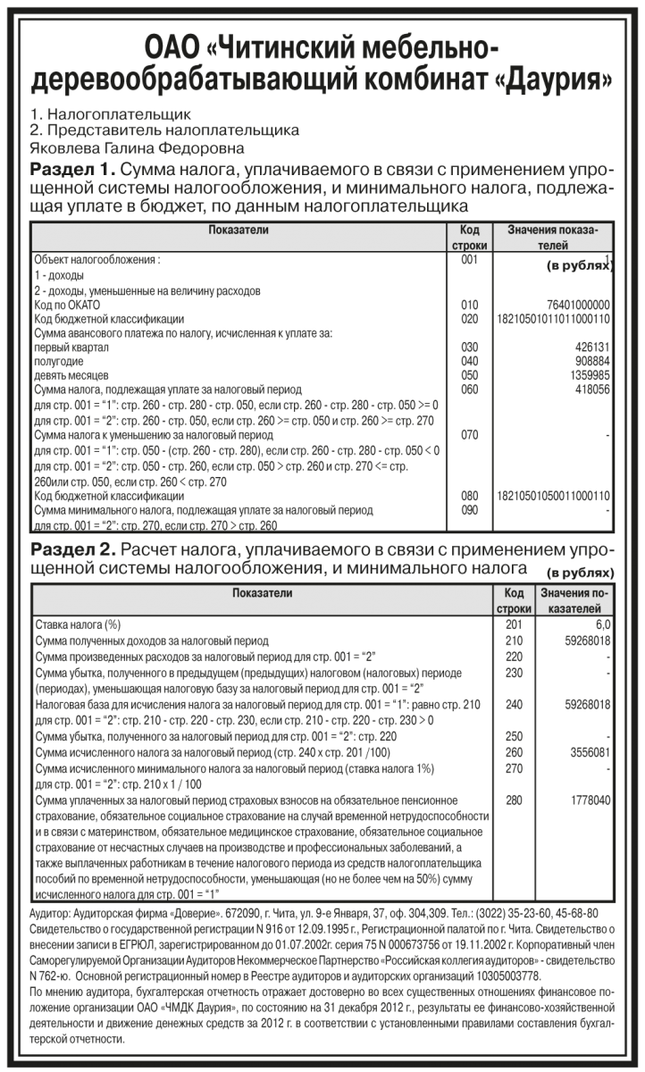 Годовая бухгалтерская отчетность ОАО «Читинский мебельно-деревообрабатывающий комбинат «Даурия» за 2012 год