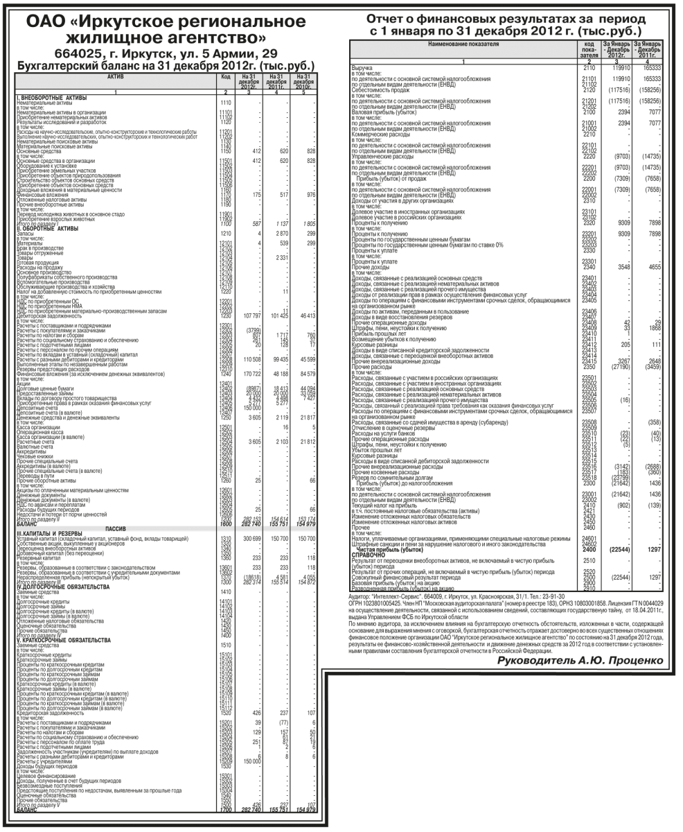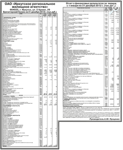 Годовая бухгалтерская отчетность ОАО «Иркутское региональное жилищное агентство» за 2012 год