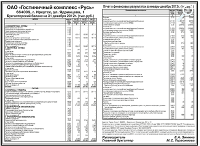 Годовая бухгалтерская отчетность ОАО «Гостиничный комплекс «Русь» за 2012 год