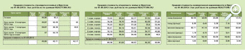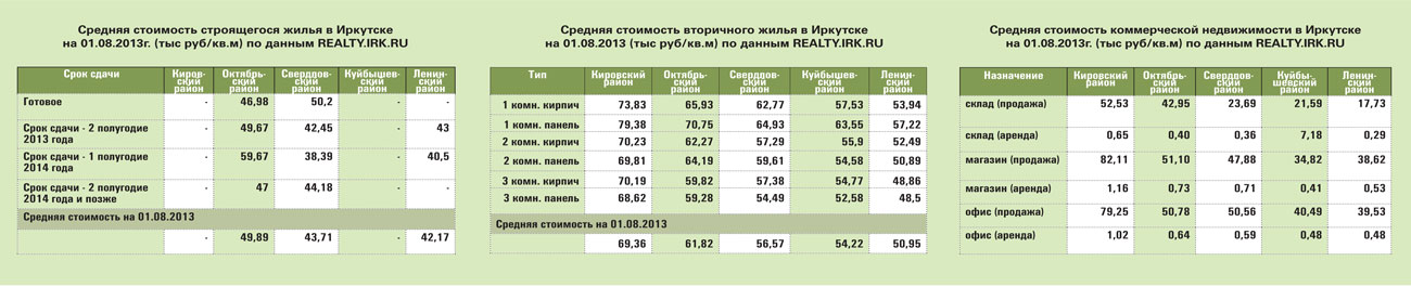 Средние цены на недвижимость в Иркутске. Данные на 01.08.2013 г