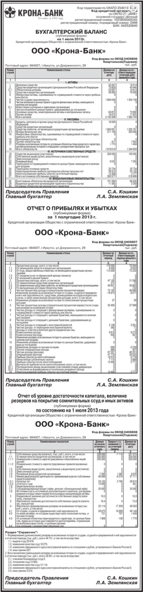 Бухгалтерский баланс ООО "Крона-Банк" на 1 июля 2013 года