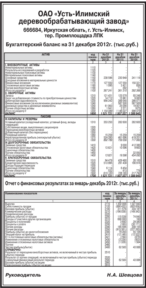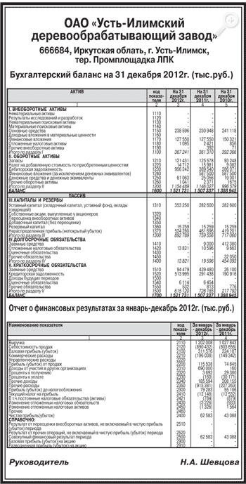 Годовая бухгалтерская отчетность ОАО «Усть-Илимский деревообрабатывающий завод» за 2012 год