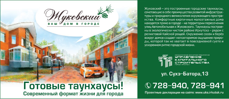 Управление капитального строительства г. Иркутска предлагает готовые таунхаусы в ЖК Жуковский