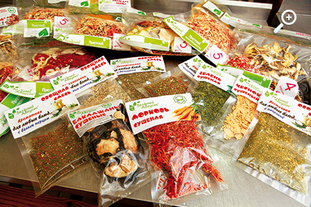 «Сушеные смеси для приготовления супов, – рассказывает Шайдурова, – оказались востребованными у туристов. Путешествовать с нашими сушеными продуктами очень комфортно: положил упаковку в рюкзак и пошел». Из восьмидесятиграммового пакетика смеси для борща (стоимость его – 108 рублей) можно сварить суп на пять порций. Добавил картошки, тушенки – туристический обед готов. «Оценили наши овощные смеси и молодые мамочки – не надо отвлекаться на нарезку и чистку – все внимание малышам!», – добавляет директор компании «Зеленый Август».