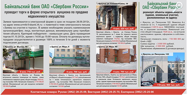 Байкальский банк ОАО «Сбербанк России» проводит торги в форме открытого аукциона по продаже недвижимого имущества.