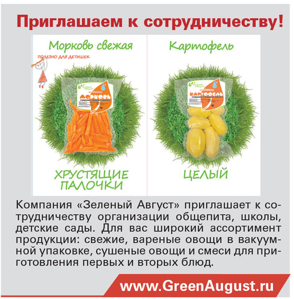 Компания «Зеленый Август» приглашает к сотрудничеству организации общепита, школы, детские сады.