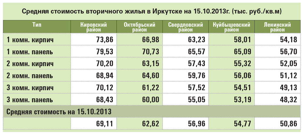 Средняя стоимость вторичного жилья в Иркутске на 15.10.2013г. (тыс. руб./кв.м)