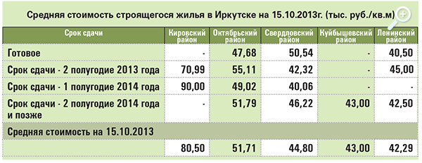 Средняя стоимость строящегося жилья в Иркутске на 15.10.2013г. (тыс. руб./кв.м)