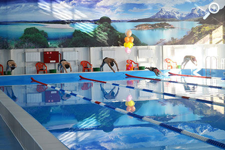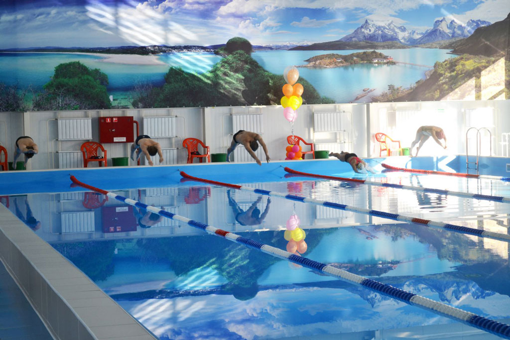Бассейн с чашей размером 25х12 м, глубиной от 1,2 до 1,8 м предназначен для круглогодичного использования. Оздоровительный объект сооружен в соответствии с современными требованиями в части надежности, экологичности и безопасности. Здесь установлено новейшее импортное оборудование: автоматическая система управления вентиляцией и водоподготовкой, единая комплексная система фильтрации воды, ультрафиолетовой очистки и хлорирования – все это позволит отдыхающим плавать с комфортом. За одну смену новый бассейн вмещает до 30 человек.