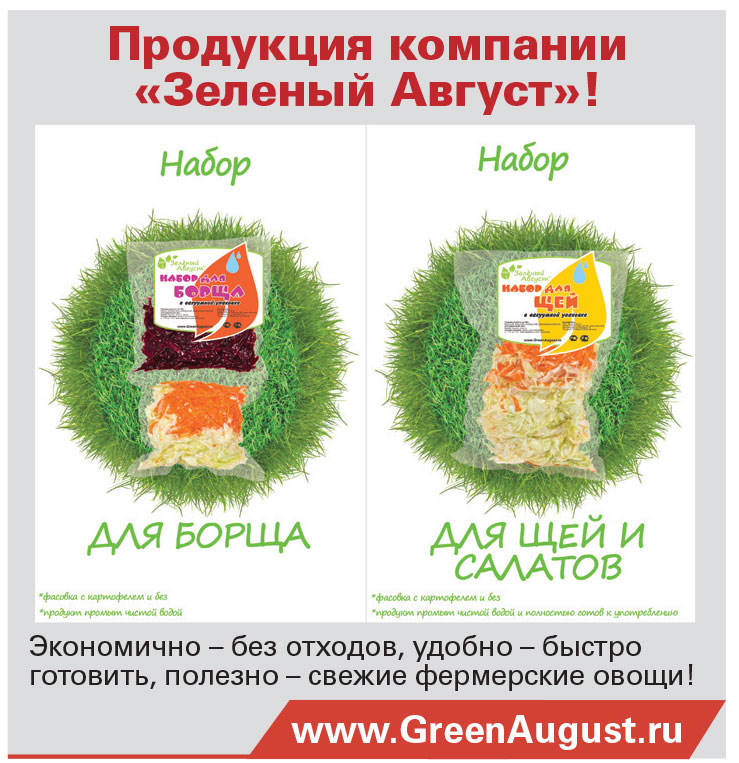 Продукция компании «Зеленый Август»! Наборы для борща, щей, салатов