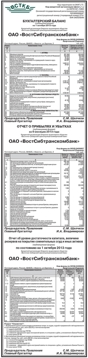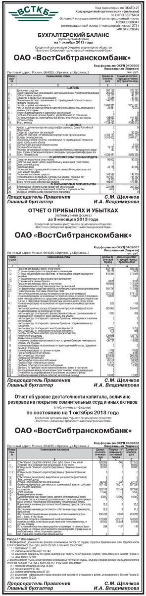 Бухгалтерский баланс ОАО «ВостСибтранскомбанк» на 1 октября 2013 года