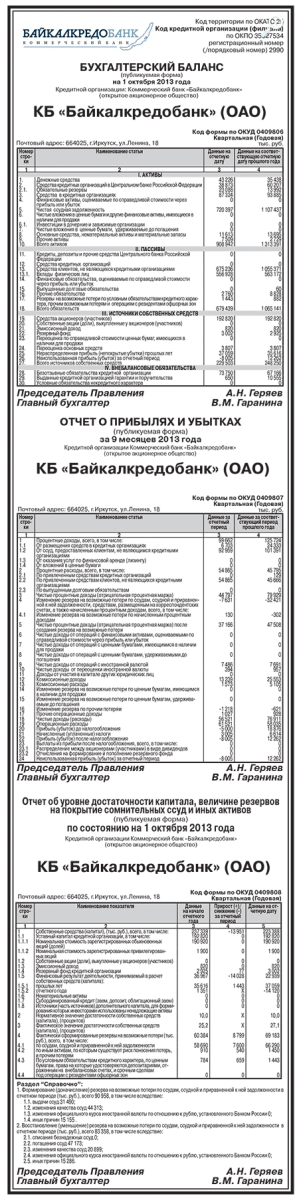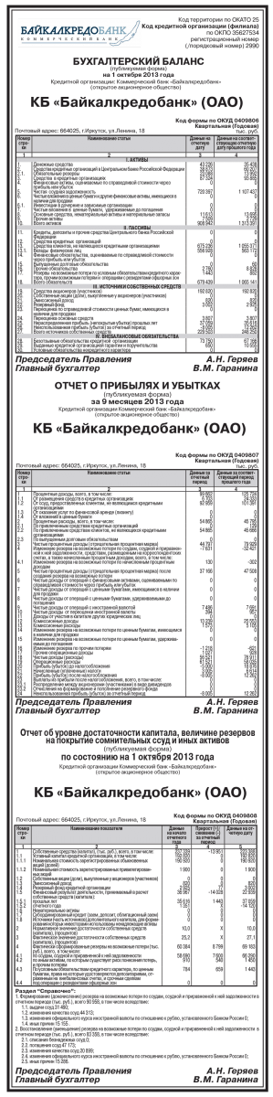 Бухгалтерский баланс ОАО КБ «Байкалкредобанк» на 1 октября 2013 года