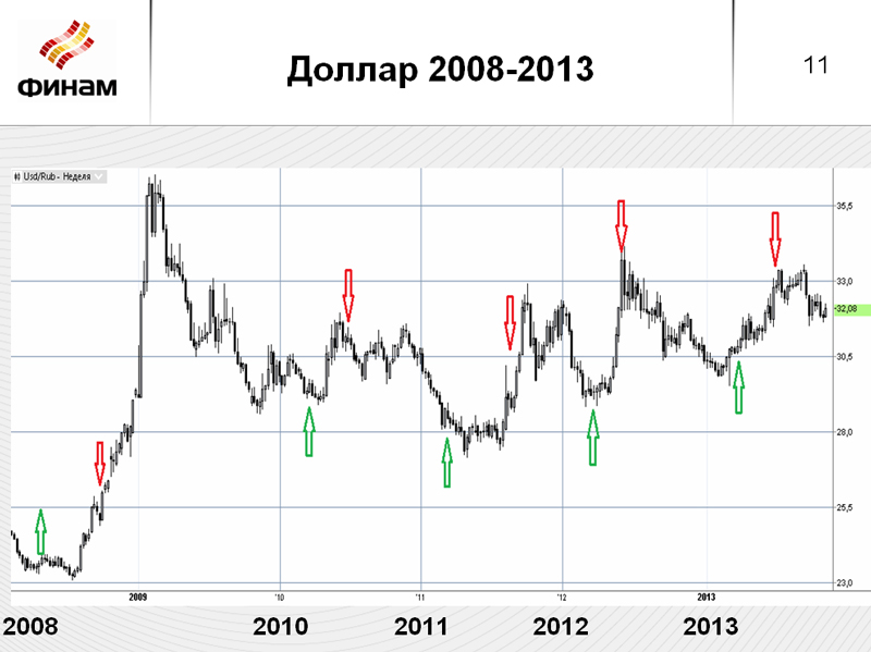 Процесс цикличный, и почти каждый год мы его наблюдаем: к марту доллар дешевеет, к августу стабильно растет. Однако отметим, что данная стратегия не применима к евро.