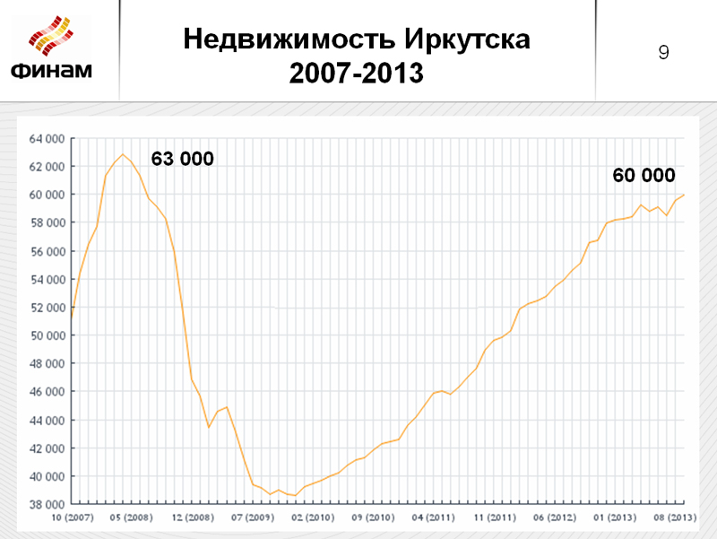 После 2007 года, когда был резкий взлет до 63 тысяч рублей за квадратный метр в среднем, произошла коррекция, цены упали до 38-39 тысяч. Потом начался плавный рост цен на недвижимость, который продолжается вплоть до сегодняшнего дня. Сейчас мы подходим к очередному пику. Для людей, купивших недвижимость до кризиса, сейчас удачный шанс выйти. А вот покупать недвижимость сейчас – нерационально.