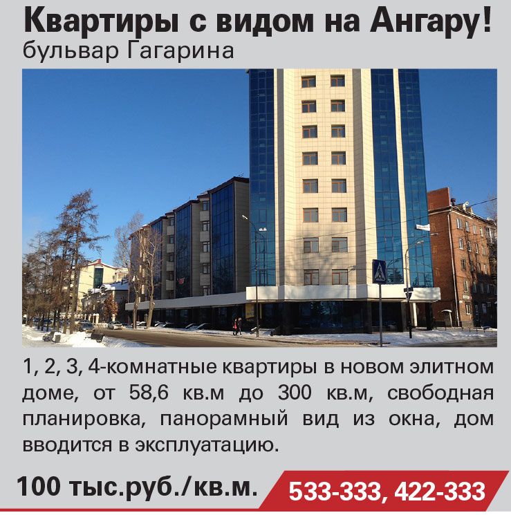 Квартиры с видом на Ангару! г.Иркутск, бульвар Гагарина