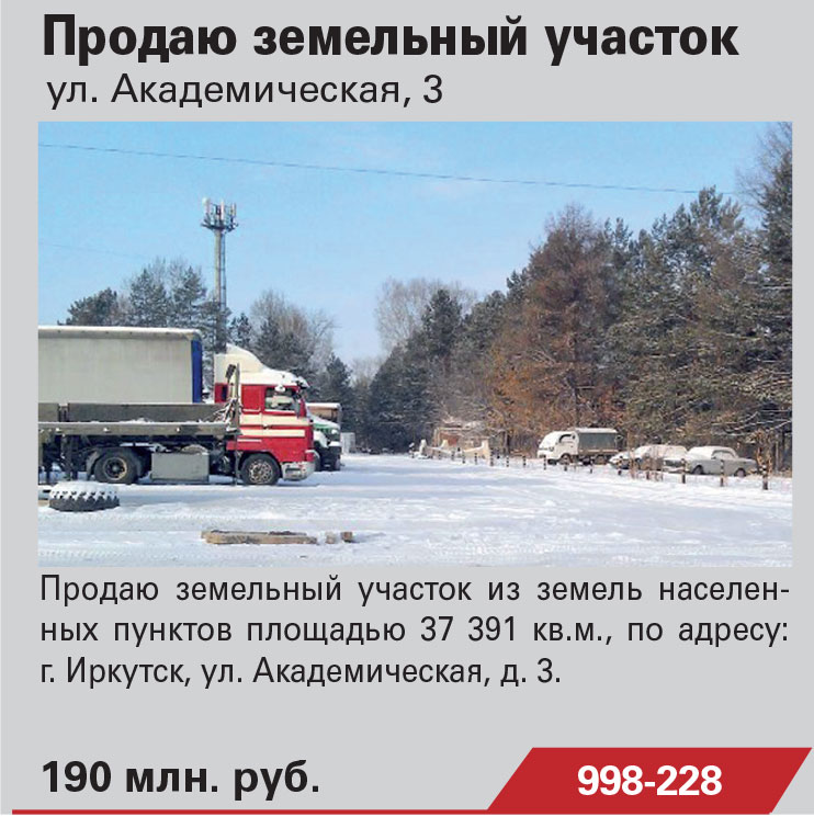 Продаю земельный участок! г.Иркутск, ул. Академическая, 3