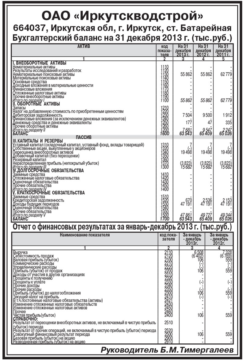 ОАО «Иркутскводстрой». Бухгалтерский баланс на 31 декабря 2013 г. (тыс.руб.)