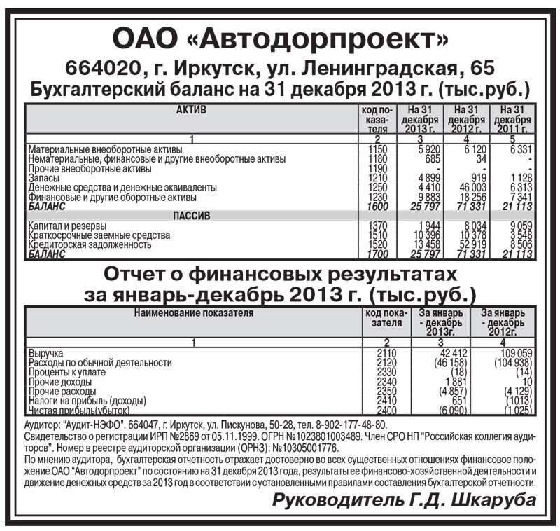 ОАО «Автодорпроект». Бухгалтерский баланс на 31 декабря 2013 г. (тыс.руб.)