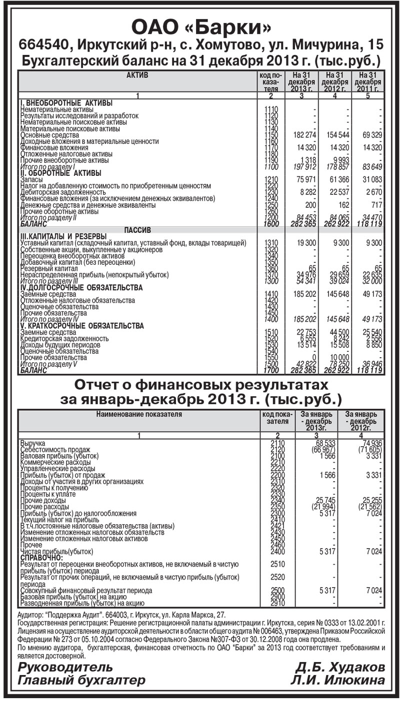 ОАО «Барки». Бухгалтерский баланс на 31 декабря 2013г. (тыс.руб.)